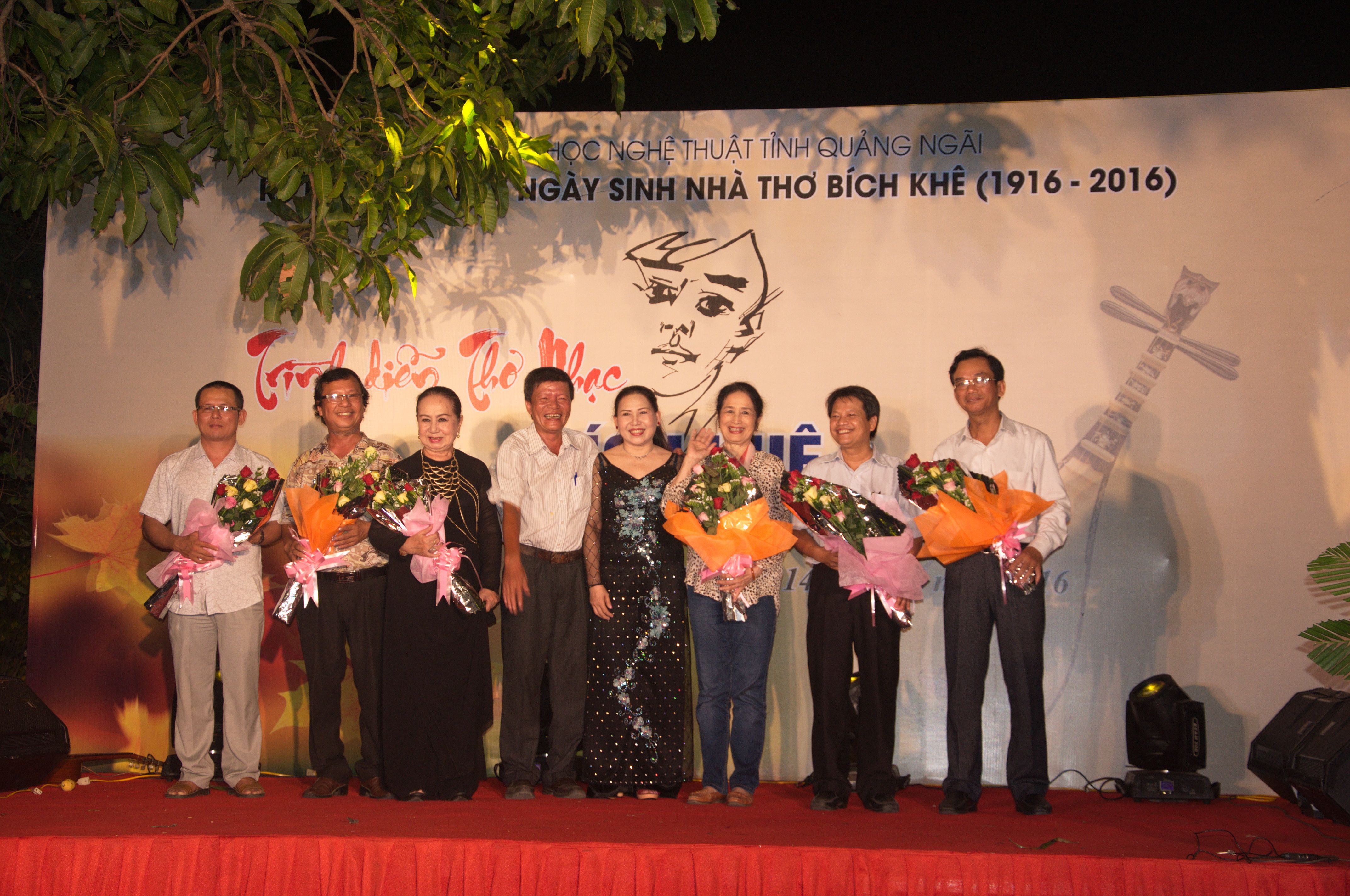 Khách về cùng 100 năm Bích Khê không ồn ào đoàn hội. Nhà thơ Nguyễn Khoa Điềm, các nhà văn nhà thơ góp công vào sách: Thanh Thảo, Lại Nguyên Ân, Hồ Thế Hà…, các vị lãnh đạo các thời kỳ Quảng Ngãi, các NSND, NS ƯT Trà Giang, Hồng Vân người của quê hương, người nhà doanh nhân Lê Quốc Ân…, và các đoàn văn nghệ sĩ bạn bè lân cận: Thừa Thiên - Huế, Đà Nẵng, Quảng Nam, Bình Định. Không nhiều, không rình rang nhưng ấm áp những tấm lòng.