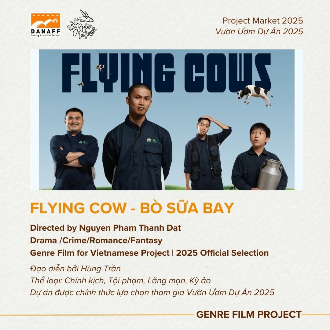 Dự án là một trong những lựa chọn chính thức tại Chợ Dự Án DANAFF 2025 – hạng mục Genre Film Projects. BTC xin được gửi lời chúc mừng và hy vọng rằng dự án 'Bò Sữa Bay' sẽ có hành trình làm việc thật nhiều cảm hứng trong thời gian tới.