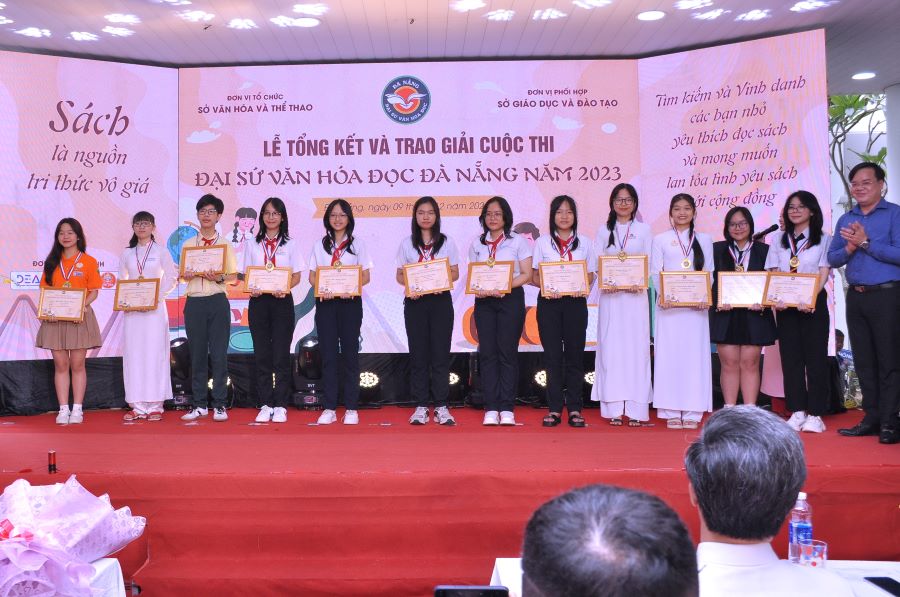 Cuộc thi “Đại sứ Văn hóa đọc Đà Nẵng” năm 2023 đã chính thức trao danh hiệu đại sứ văn hóa đọc cho 4 bạn: Nguyễn Trần Khánh Linh (Trường THPT chuyên Lê Quý Đôn); Đậu Hà Nhi (Trường THCS Trần Quang Khải, huyện Hòa Vang); Đinh Ngọc Thái (Trường Tiểu học Trần Cao Vân) và Phạm Anh Khôi (Trường THCS Huỳnh Thúc Kháng, cả 2 trường đều trên địa bàn quận Thanh Khê.