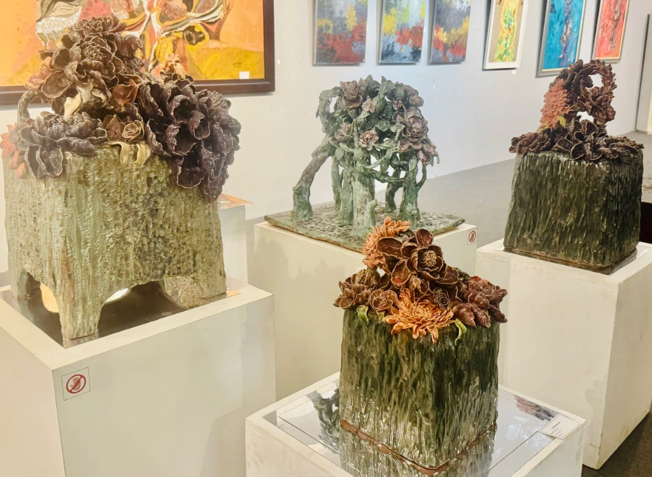| Tác phẩm gốm men "Vườn hoa xuân". Ảnh: Hồ Lam |