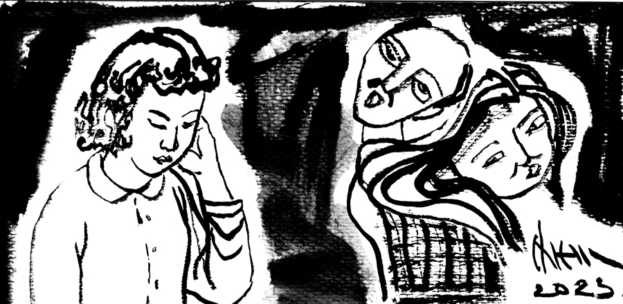 Bố tôi có người đàn bà khác. Tôi thêm thằng em cùng cha khác mẹ. Mẹ tôi sốc. Bao lâu bươn bải sớm tối một mình, chăm sóc hai con, những tưởng bản thân chả còn để ý tình cảm vợ chồng, vì cơm áo gạo tiền đã cuốn mẹ sống gấp gáp, sống quên bản thân mình, quên đi trái tim đàn bà của mình còn thổn thức hay không. Mẹ ngỡ bản thân đã trơ lì, nguội lạnh cảm xúc, chỉ biết quan tâm đến tiền. Như sét đánh ngang tai khi nghe chồng mình thừa nhận có người đàn bà khác, trái tim mẹ chợt trỗi dậy, lồng ngực nghẹt thở và đau đớn khôn cùng. Tôi kịp thấy tia máu hằn đỏ, lóe lên trong mắt mẹ. Mẹ gào thét giữa buổi mưa gió, lao ra khỏi nhà. Bố tôi đầu tựa vào ghế băng, thở dài, ngửa mặt, trân trân nhìn trần nhà. Bà nội ngồi lặng im, tay đều đều phe phẩy chiếc quạt mo trong góc buồng.