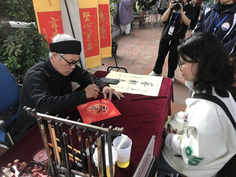 | Các bạn trẻ xin chữ ông đồ để cầu may tại sự kiện |