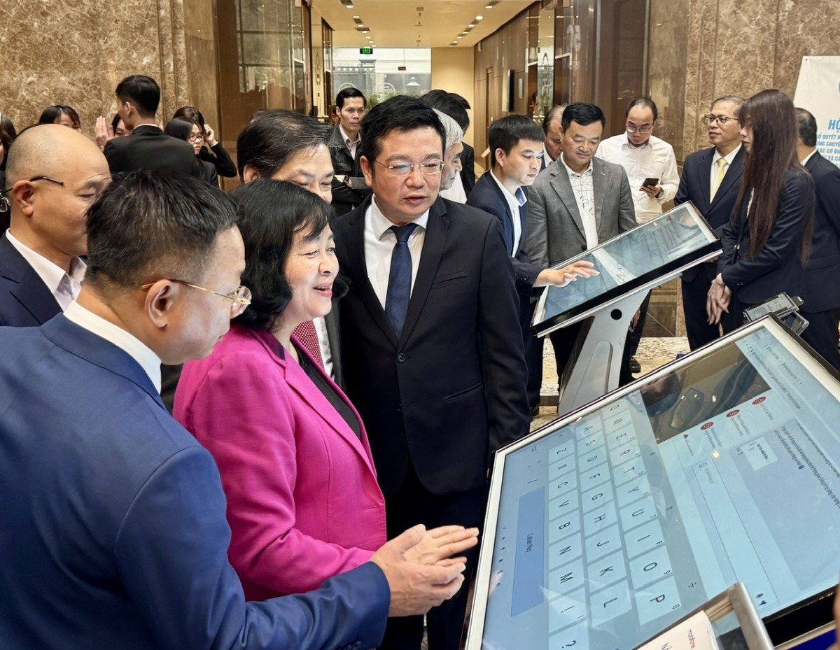 | Bí thư Thành ủy Hà Nội Bùi Thị Minh Hoài trải nghiệm ứng dụng chuyển đổi số - Ảnh minh họa. Nguồn VGP |