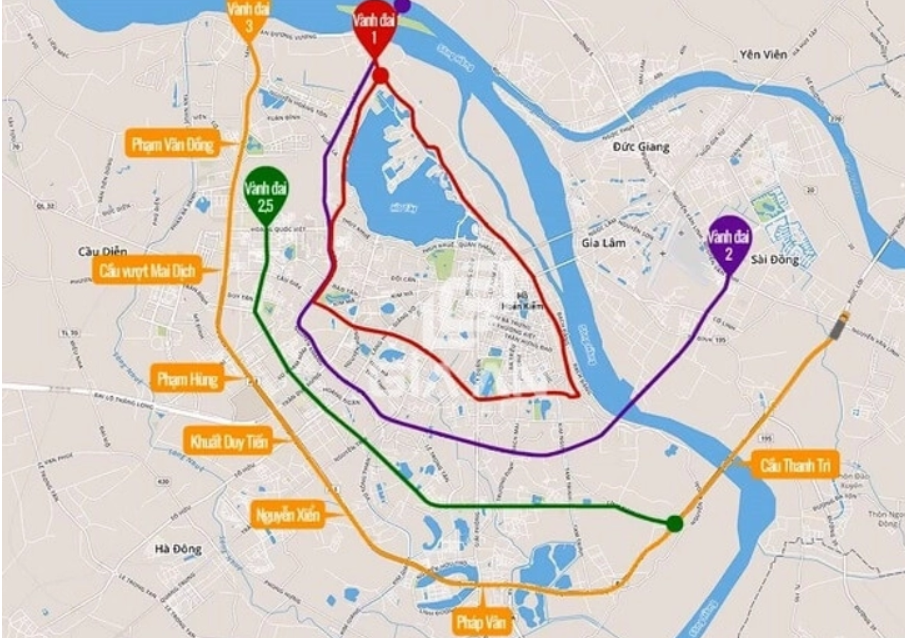 | Bản đồ đường vành đai 1, 2, 3 của Hà Nội - Ảnh: Bộ Xây dựng |