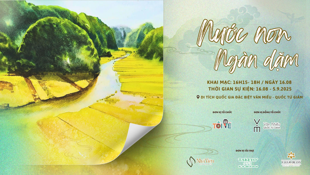 | Triển lãm Nước non ngàn dặm diễn ra từ ngày 16/8 đến hết ngày 5/9 tại không gian nhà Thái học, Văn Miếu - Quốc Tử Giám, số 58 phố Quốc Tử Giám, phường Văn Miếu - Quốc Tử Giám, Hà Nội. |