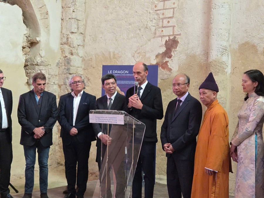| Hiện vật quảng bá di sản Hoàng thành Thăng Long trưng bày tại Pháp. Ảnh: BTC. |