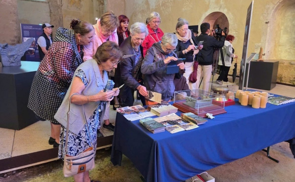 | Du khách Pháp tham quan các hiện vật, tư liệu trưng bày tại không gian khu di tích quốc gia đặc biệt Cổ Loa của Việt Nam tại Provins - Ảnh: BTC. |