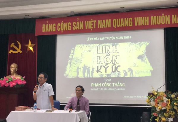 | Nhà văn Bùi Việt Mỹ, Phó Chủ tịch Hội Nhà văn Hà Nội cùng tác giả Phạm Công Thắng tại buổi ra mắt sách. |