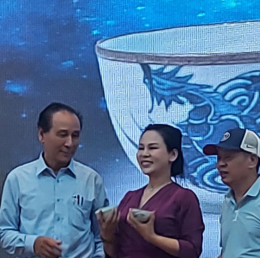 Sau 3 tập truyện ngắn : Người đàn bà và chiếc chén bạc; Cây đèn gia bảo; Linh hồn gấu, nhà văn Phạm Xuân Hiếu, Hội viên Hội Nhà văn VN đã xuất bản và ra mắt tiểu thuyết " Thiên hà cổ vật", đồng thời đấu giá cổ vật vào sáng 28.8.2022 tại thành phố Hải Phòng. ( Ảnh: Nhà văn Phạm Xuân Hiếu trao cổ vật cho người đấu giá)