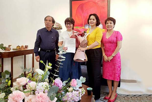 Từ bên trái sang: Nhà thơ Nguyễn Quang Thiều – Chủ tịch Hội Nhà văn Việt Nam; tân Giám đốc NXB Hội Nhà văn Nguyễn Thúy Hằng; bà Thân Thị Vân Anh – Phó Ban Thường trực Ban Tổ chức Hội viên; nhà thơ Dương Dương Hảo – Chánh Văn phòng Hội Nhà văn Việt Nam.