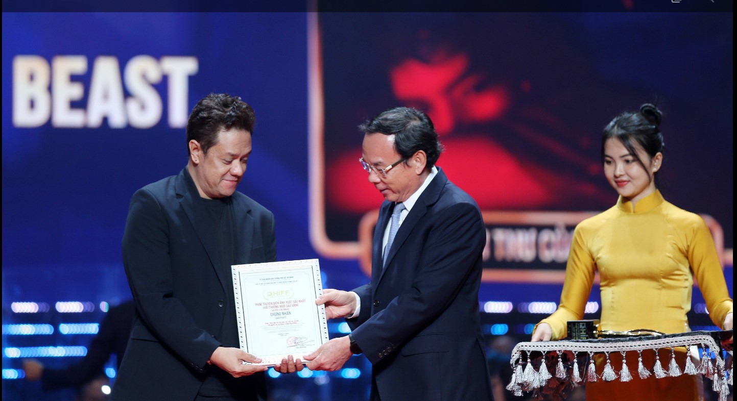 | Bí thư Thành ủy TPHCM Nguyễn Văn Nên trao giải Phim truyện điện ảnh xuất sắc nhất (Giải thưởng Ngôi sao vàng) cho đại diện đoàn phim "The gospel of the beast" (Phúc âm thư của quái thú, Philippines) |