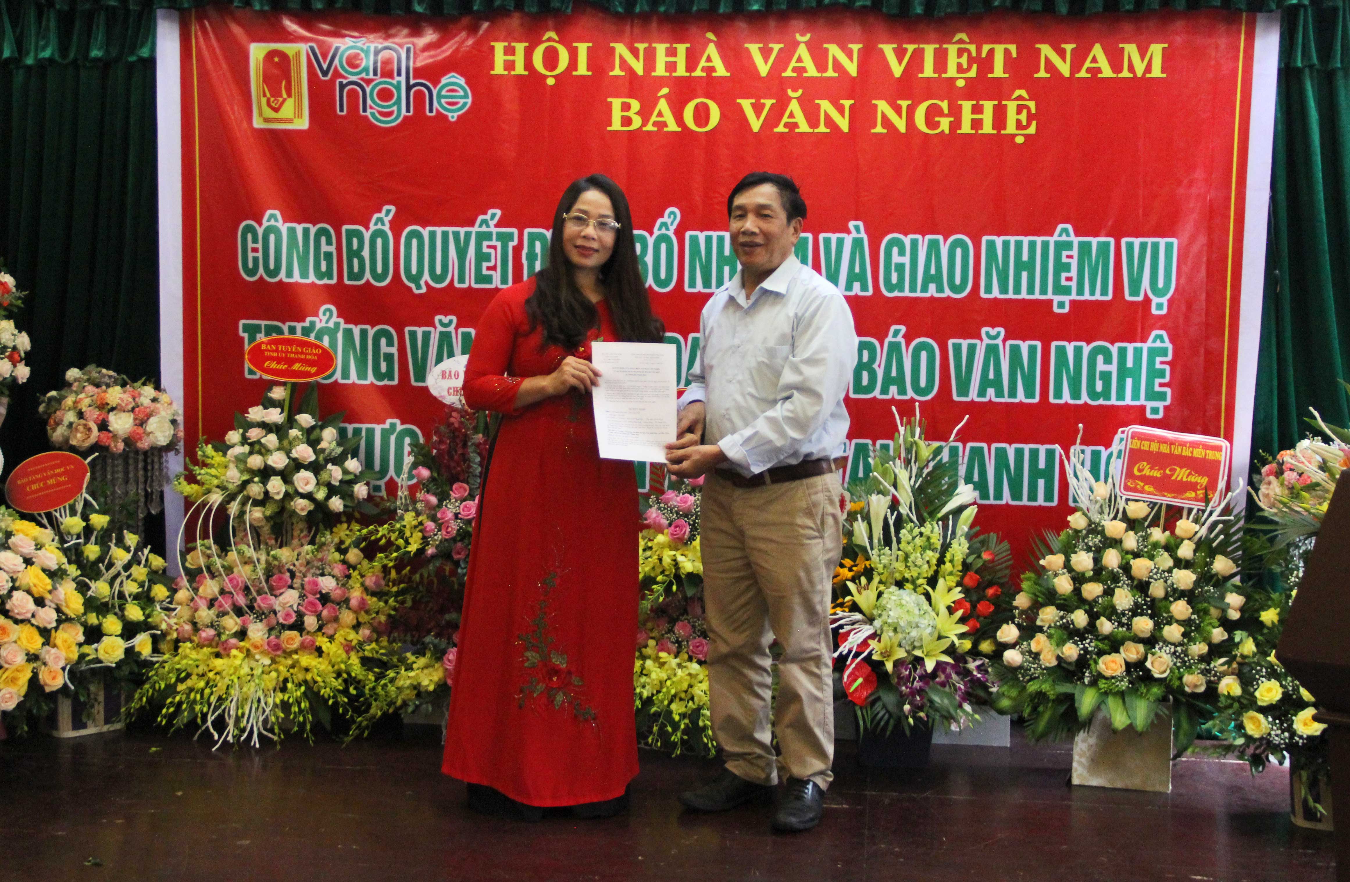 Tại buổi lễ, Tổng Biên tập Báo Văn nghệ, nhà văn Khuất Quang Thụy, đã công bố quyết định số 1106/QĐ-BVN về việc bổ nhiệm và giao nhiệm vụ Trưởng văn phòng đại diện Báo Văn nghệ khu vực Bắc Miền trung tại Thanh Hóa cho nhà văn Viên Lan Anh, đồng thời ghi nhận những đóng góp của nhà văn Viên Lan Anh đối với sự phát triển của Báo Văn nghệ nói chung và Văn phòng đại diện khu vực Bắc Miền trung tại Thanh Hóa nói riêng trong suốt thời gian qua. Tổng Biên tập Khuất Quang Thụy cũng yêu cầu nhà văn Viên Lan Anh, trong cương vị và trọng trách mới được giao sẽ phải hế sức nỗ lực để “thổi bùng lên ngọn lửa văn chương”; gắn kết được các thế hệ văn nghệ sĩ và thu hút được các cây viết tiềm năng đến với báo.