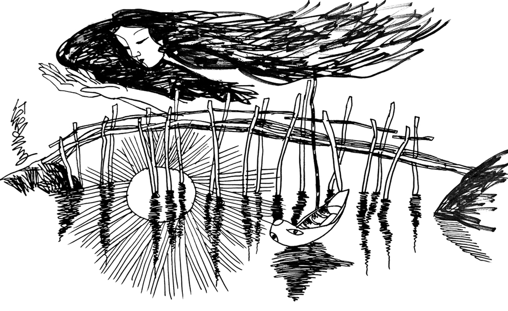 Nàng thấy Thành đứng trước mặt mình. Hóa thân ngàn vạn. Chỉ cần nhìn là nàng biết đó là Thành. Vì nỗi đau khiến cả người nàng như run rẩy. Nhã rơi xuyên qua một buổi hoàng hôn, vào trong một ánh trăng đỏ lựng, rồi nàng rơi xuyên qua biển rộng, một hành tinh tan vỡ, một thiên hà thành hình. Nhưng càng rơi, càng rơi, cây cầu lại càng gần càng gần hơn nữa. Cây cầu hóa thành một sợi dây, cắt xuyên qua người nàng.