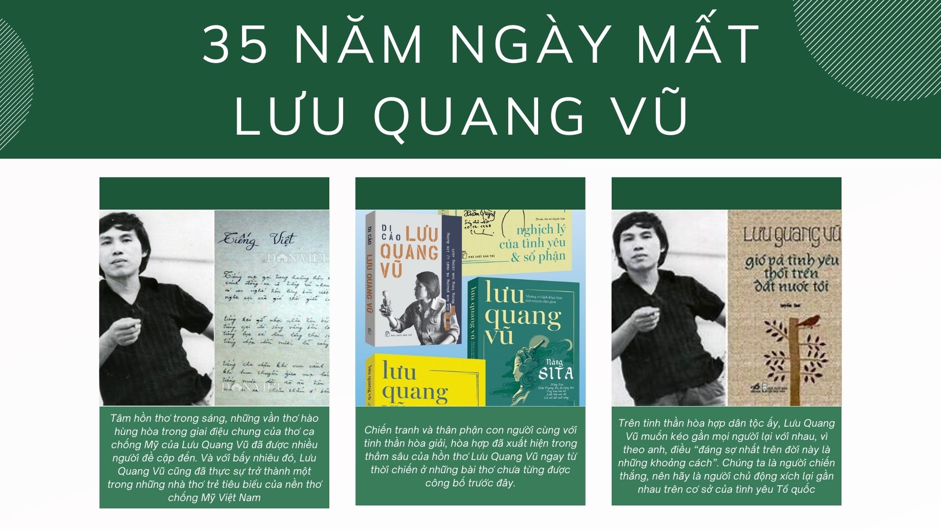 Nguồn thơ trích từ: Gió và tình yêu thổi trên đất nước tôi - Lưu Quang Vũ (Nxb Hội Nhà văn, 2010); và Lưu Quang Vũ Di cảo (Nxb Trẻ, 2018).