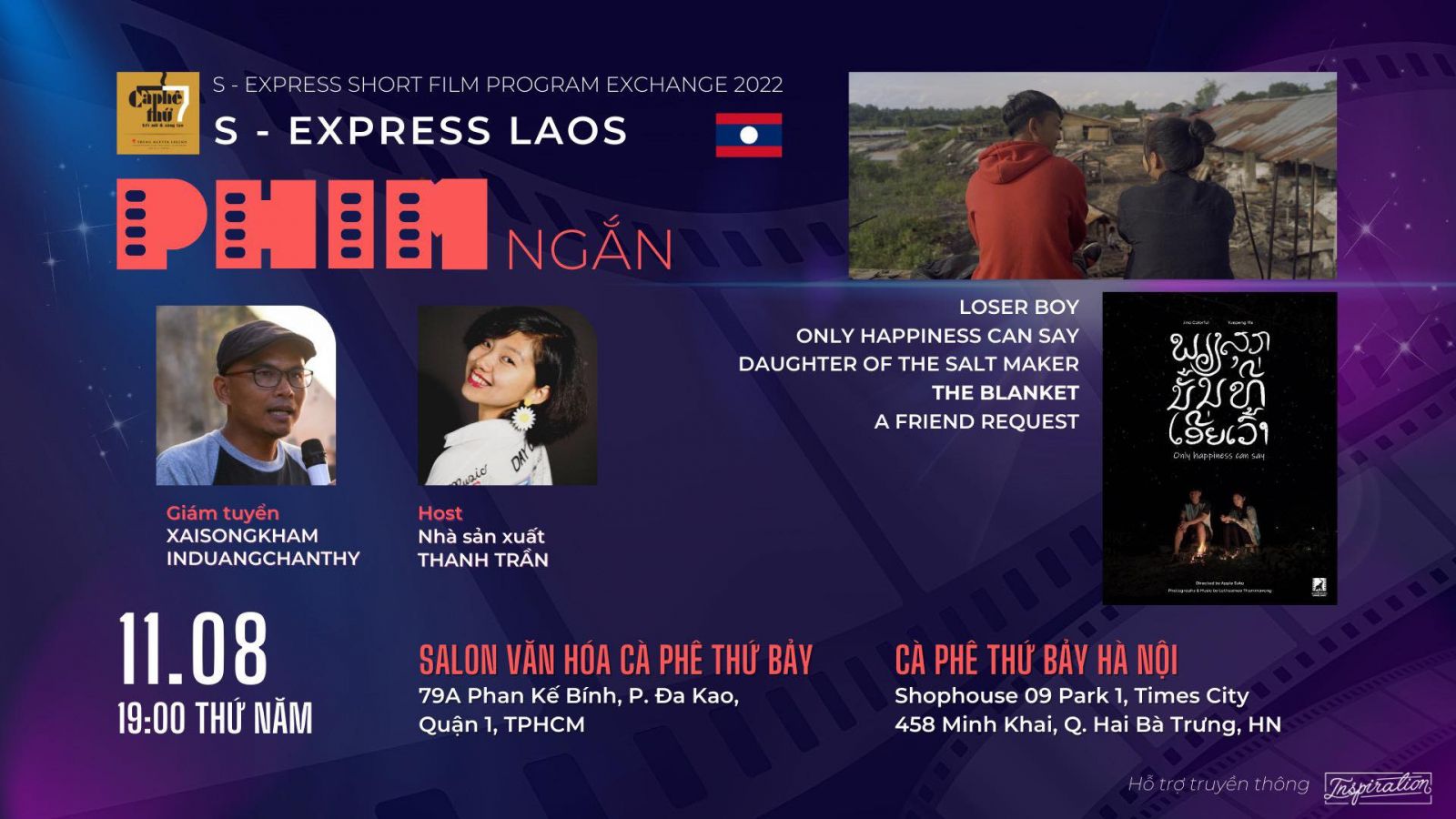 Được biết. sau buổi chiếu là chương trình giao lưu, trò chuyện trực tuyến cùng giám tuyển Xaisongkham Induangchanthy (nhà làm phim Lào, đồng sáng lập Lao New Wave Cinema - nơi quy tụ một nhóm các nhà làm phim hoạt động tại Lào) và các đạo diễn của 5 bộ phim ngắn trên.