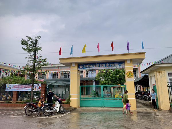 | Đón học sinh đầu giờ ở Trường Mầm non Tây Phong |