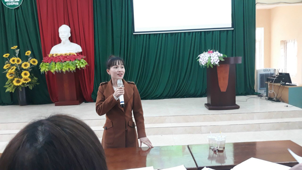 | Cô giáo Đào Thị Thu Trang giảng tập huấn cho các đồng nghiệp |