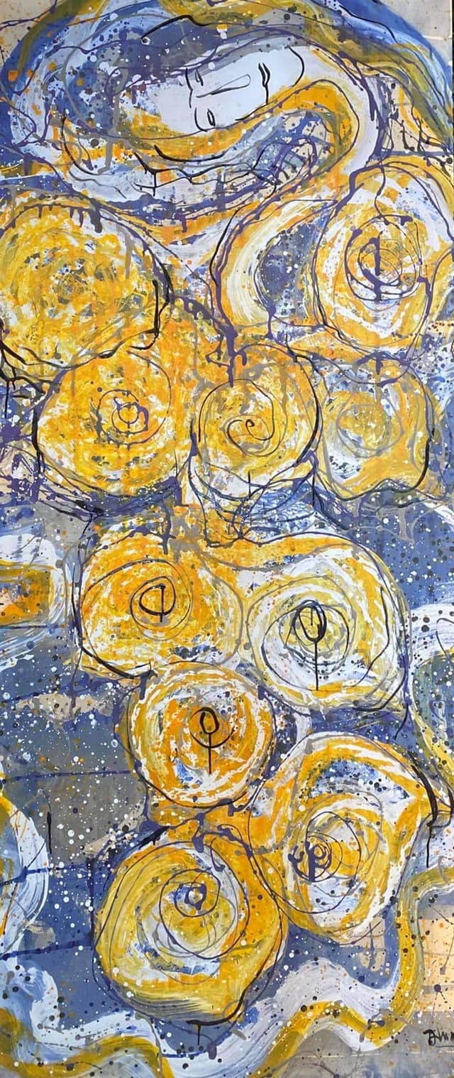 Mạc Hoàng Thượng: KHÔNG ĐỀ SỐ 6 (acrylic và tổng hợp), 28x28 cm, 2016. Giá bán ngay 10 triệu đồng. Khởi điểm 5 triệu đồng, tranh do Loan Trần tặng.
