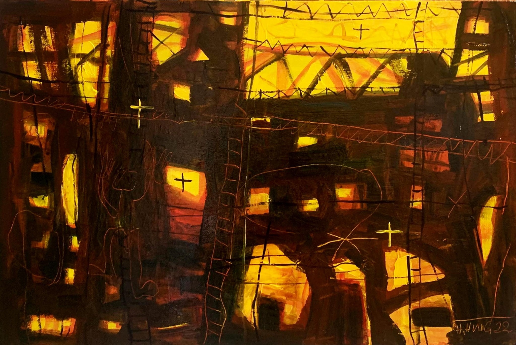 Nguyễn Minh Châu: TRỪU TƯỢNG BIỂU HIỆN (sơn dầu trên toan), 100x130 cm, 2016. Giá bán ngay 50 triệu đồng. Khởi điểm 20 triệu đồng, tranh do Thu Dung tặng 50%.