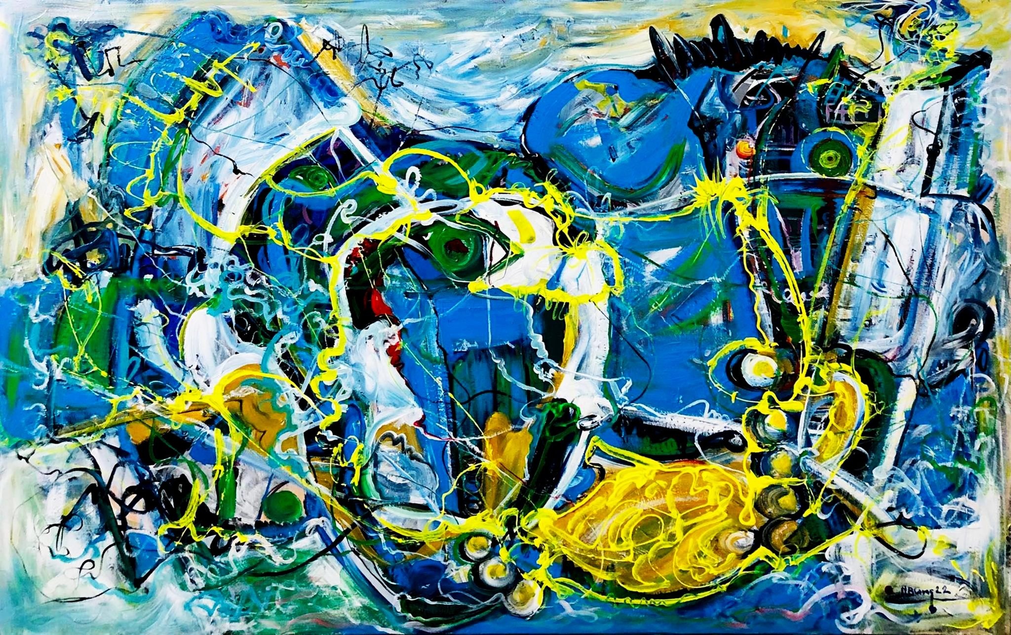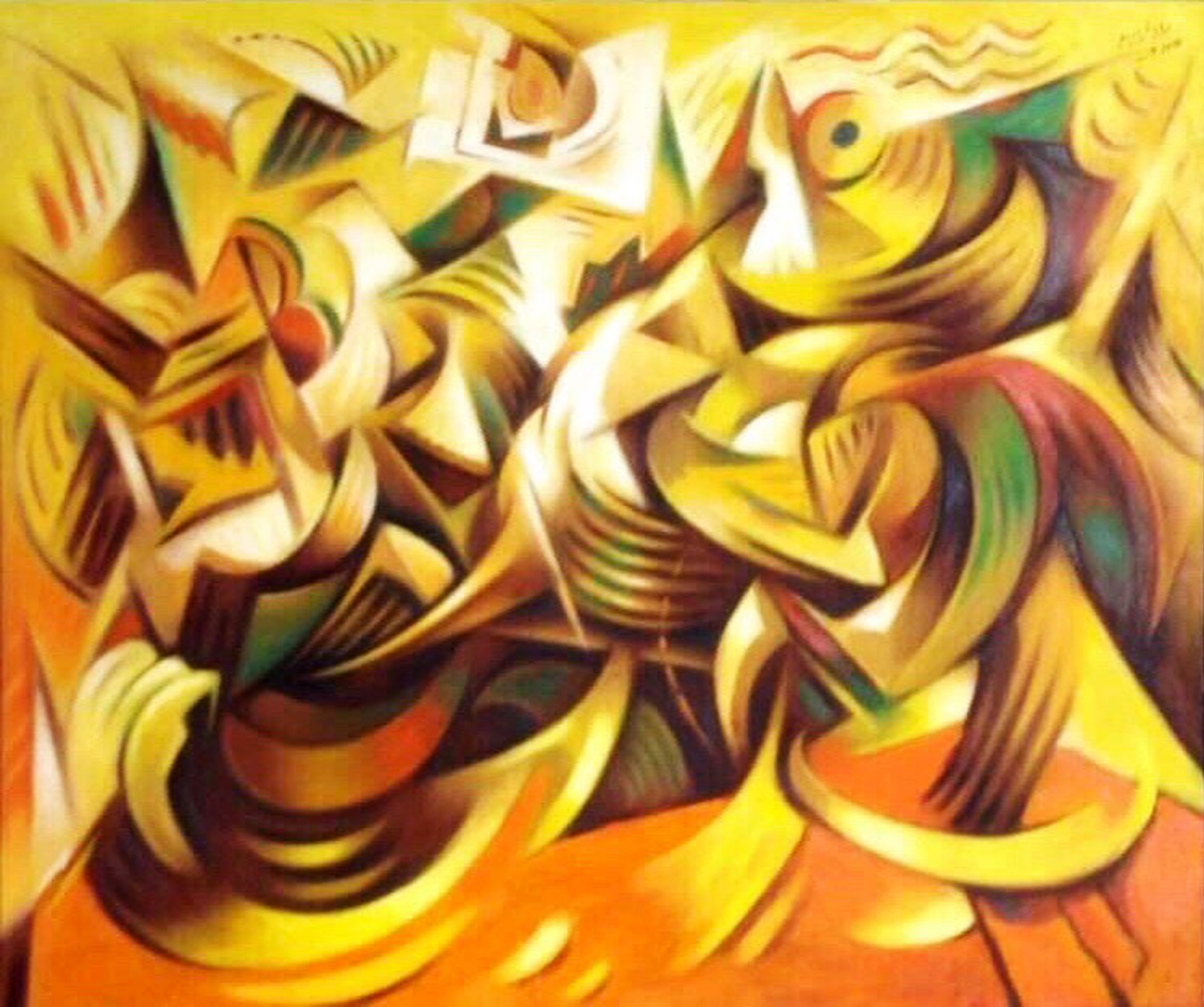| Nguyễn Bá Cung: LINH QUY VÀNG (gacrylic trên toan), 80x126,3 cm, 2022. Giá bán ngay 20 triệu đồng. Khởi điểm 10 triệu đồng, tranh do Lý Đợi tặng |