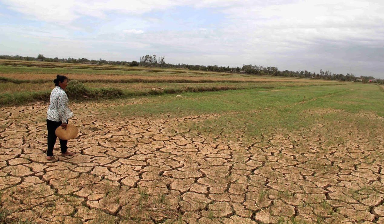 | Đồng ruộng tại Đồng bằng sông Cửu Long nứt nẻ trong hạn mặn |