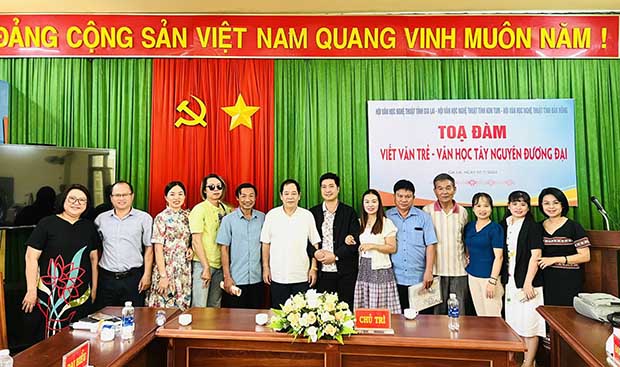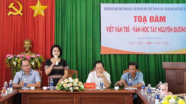 Buổi Toạ đàm “Viết văn trẻ – Văn học Tây Nguyên đương đại” diễn ra vào sáng 7/7/2024 tại Hội Văn học Nghệ thuật tỉnh Gia Lai do 3 Hội VHNT: Gia Lai – Kon Tum – Đắk Nông phối hợp tổ chức trong khoảng thời gian từ 8g – 11g30 với sự quan tâm nhiệt tình của đông đảo khách mời, hội viên và các em học sinh lớp bồi dưỡng Văn học trẻ – Văn học Dân tộc thiểu số.