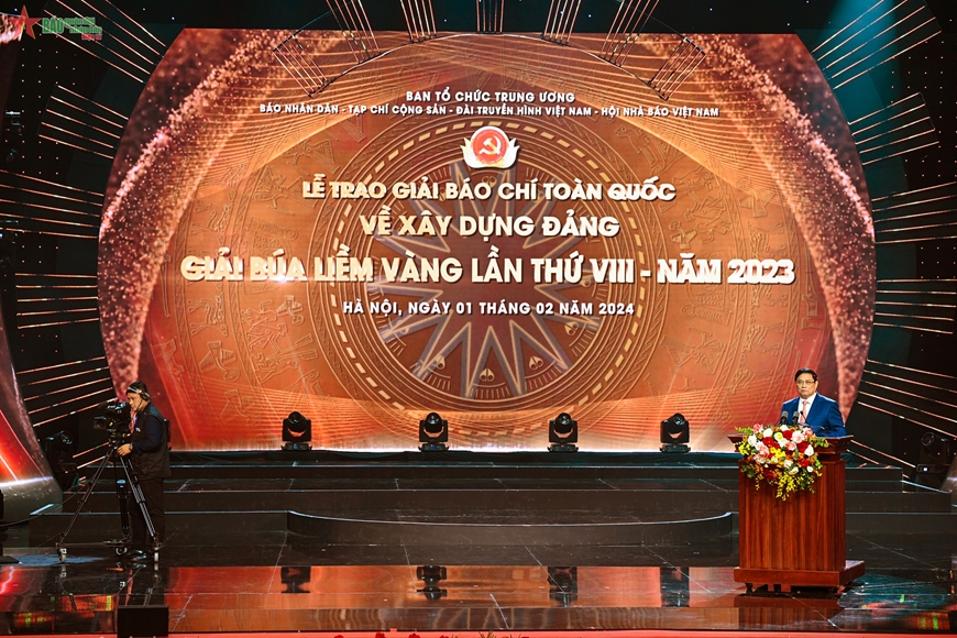 Phát biểu tại buổi Lễ, Thủ tướng Chính phủ Phạm Minh Chính nhấn mạnh: Qua 8 lần tổ chức, Giải báo chí toàn quốc về xây dựng Đảng mang tên “Búa liềm vàng” đã khẳng định giá trị, sức hấp dẫn, sự lan tỏa đối với công tác xây dựng Đảng, xây dựng hệ thống chính trị, xây dựng đội ngũ cán bộ; đồng thời khẳng định ý thức chính trị sâu sắc, đạo đức nghề nghiệp và tấm lòng son sắt cách mạng của những người làm báo trong cả nước, xứng đáng như lời dạy của Bác Hồ: “Cán bộ báo chí cũng là chiến sĩ cách mạng”.