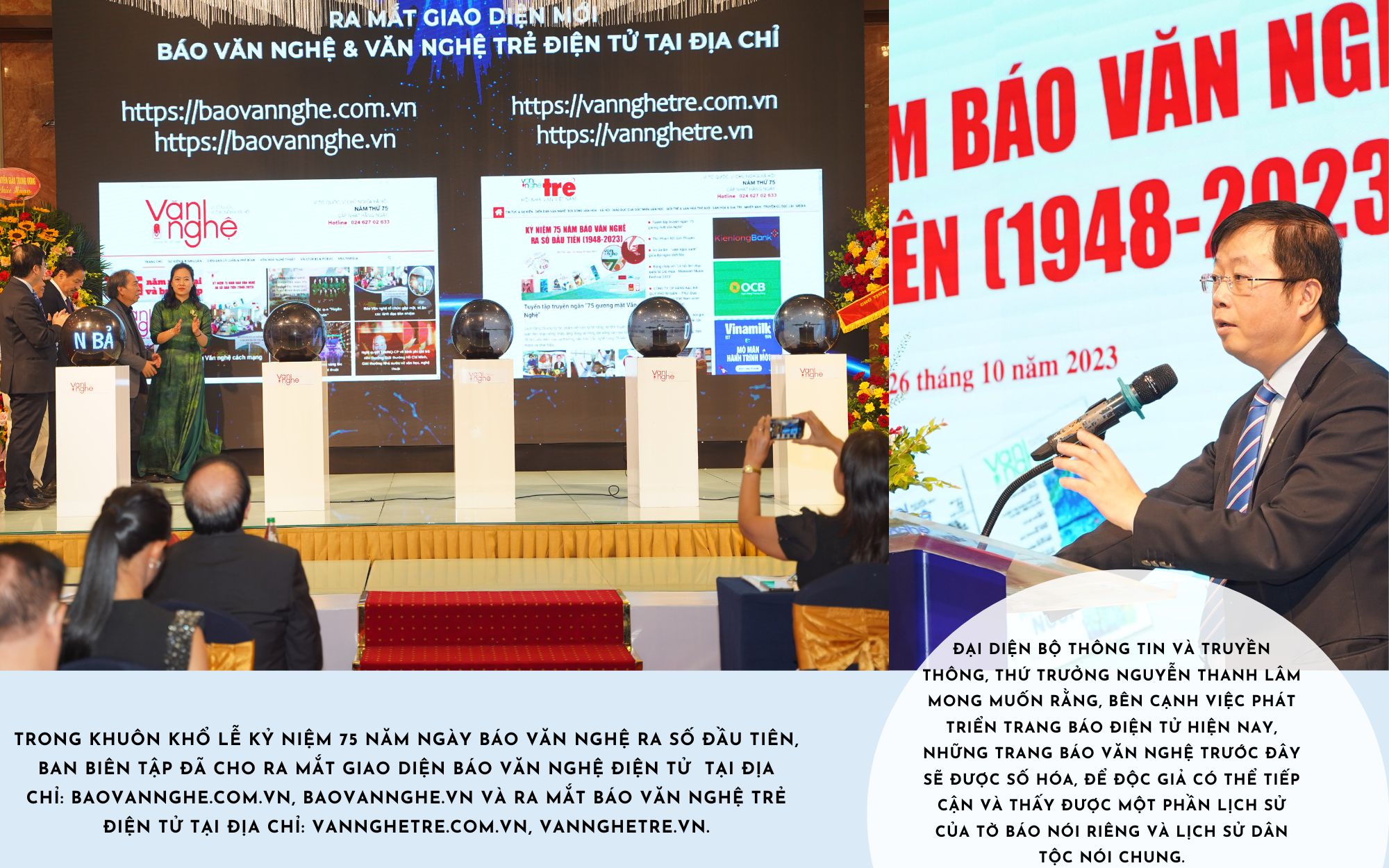 Trong khuôn khổ Lễ kỷ niệm 75 năm Ngày Báo Văn nghệ ra số đầu tiên, Ban Biên tập đã cho ra mắt giao diện Báo Văn nghệ điện tử tại địa chỉ: baovannghe.com.vn, baovannghe.vn và ra mắt báo Văn nghệ Trẻ điện tử tại địa chỉ: vannghetre.com.vn, vannghetre.vn.