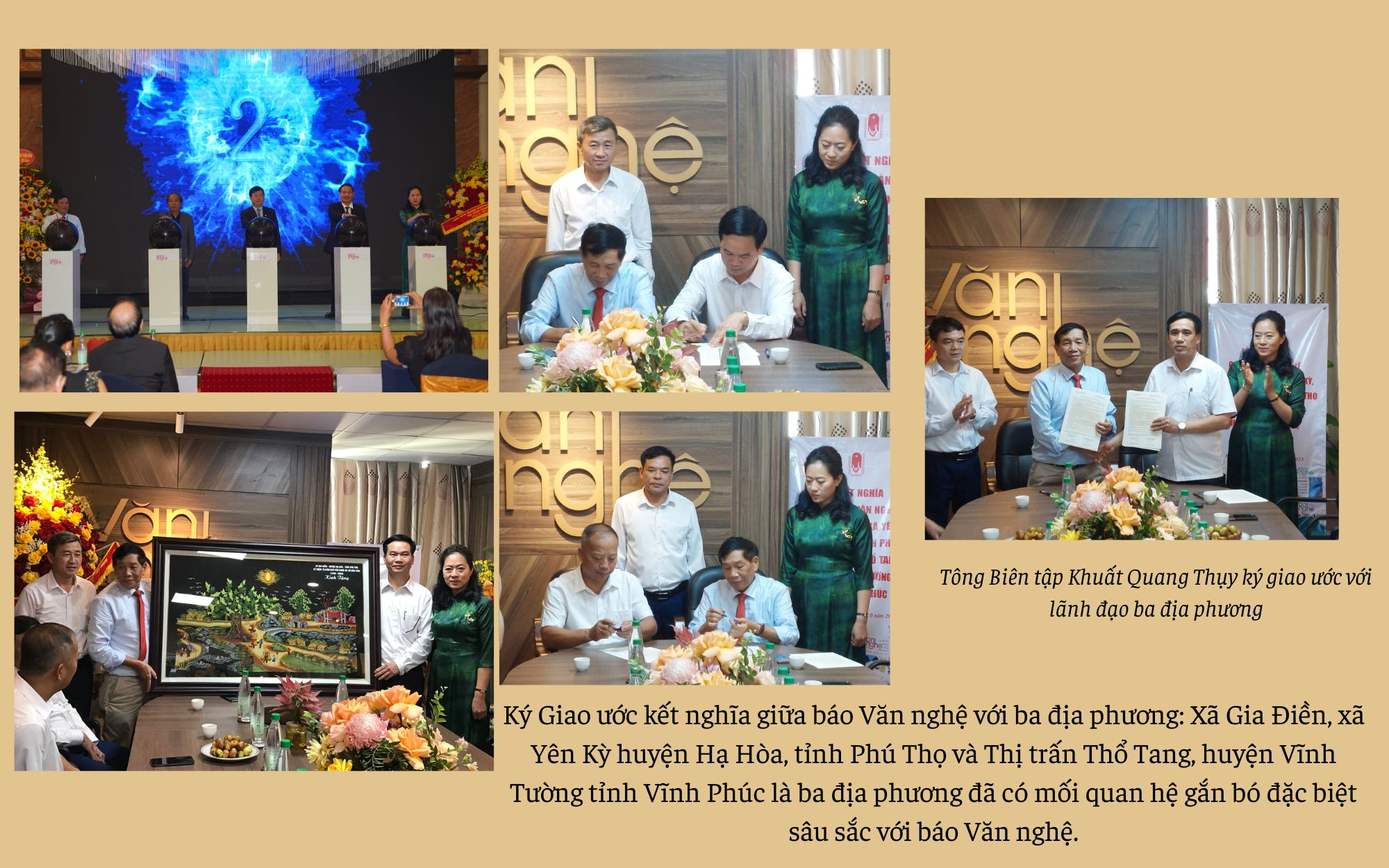 Để gắn kết hơn với bạn đọc, bạn viết và tiếp tục tri ân nơi quê hương, nơi đặt nền móng cho sự ra đời của tờ báo, lễ ký Giao ước kết nghĩa giữa báo Văn nghệ với ba địa phương: Xã Gia Điền, xã Yên Kỳ huyện Hạ Hòa, tỉnh Phú Thọ và Thị trấn Thổ Tang, huyện Vĩnh Tường tỉnh Vĩnh Phúc là ba địa phương đã có mối quan hệ gắn bó đặc biệt sâu sắc với báo Văn nghệ đã được diễn ra tại trụ sở báo ( 17 Trần Quốc Toản- Hoàn Kiếm- Hà Nội). Lễ ký kết giao ước tiếp tục khẳng định, nơi đây không chỉ là quê hương văn hóa, sâu nặng, nghĩa tình với báo Văn nghệ mà còn là những địa phương cùng tờ báo Văn nghệ bước về phía trước.