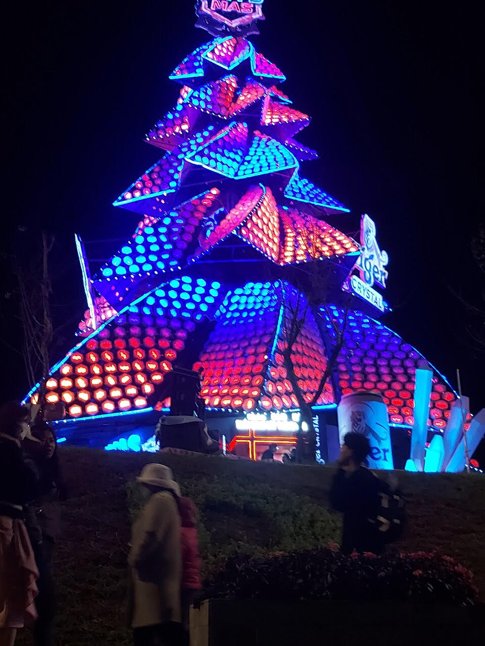 18g đèn hoa rực sáng ở nhiều góc trời Đà Lạt. Tháp đèn bưu điện, cây thông nô en, các nhà hàng ăn uống mua sắm tấp nập những người đi du hoa mua sắm. Các quầy, gánh cơ động bán trứng nước, bắp nướng, đậu nành nóng hổi mời mọc khách. Dọc đường ven hồ những lẵng hoa, chậu hoa, khóm hoa như phô diễn vẻ đẹp sắp đặt của lễ hội. Hoa tràn ngập thế, mà vẫn ít hơn người đi trẩy hội.
