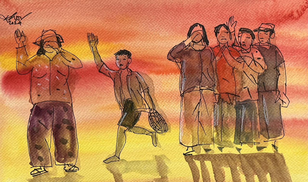 Khi tàu từ từ chuyển bánh, cả khoang tàu nơi tôi ngồi đều nhoài người ra phía Dũng. Dưới sân ga, Dũng đứng trân người, từ từ giơ tay vẫy nhẹ, rồi như không kìm nén được, Dũng òa khóc chạy theo tàu. Dáng Dũng gầy đen, đôi mắt sáng đẫm lệ một tay cầm cái rổ không, tay kia chới với vẫy, hình em chạy như bức tượng đồng tạc lên nền trời với ráng chiều đỏ au sân ga Huế. Hình ảnh ấy khắc sâu, ám ảnh mãi suốt đời tôi.