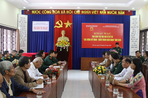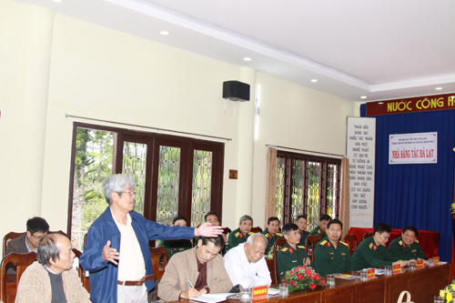 Rồi sau giây phút ấy, Đại tá Lê Văn Thái - Phó Chủ nhiệm Chính trị của Học viện Lục quân lại có những chia sẻ vừa như làm tan đi cái bầu không khí u buồn ấy lại vừa như thôi thúc các văn nghệ sĩ phải mạnh mẽ hơn, quyết liệt hơn: “Kính thưa các bác, các anh, các chị văn nghệ sĩ, chúng ta hôm nay đang ngồi đây chắc chắn ai cũng đau xót lắm, nhưng đã là những người lính, chúng ta luôn biết biến những đau thương thành hành động cụ thể; Và ở trại sáng tác này, cán bộ, giảng viên, học viên của Học viện Lục quân chúng tôi luôn sẵn sàng đồng hành cùng các nhà văn, nhà thơ. Chúng tôi sẽ làm tất cả những gì có thể để cùng các nhà văn, nhà thơ hoàn thành xuất sắc các mục tiêu mà trại sáng tác đề ra…”. Những chia sẻ của Đại tá Lê Văn Thái cũng như sự nhiệt tình của cán bộ, giảng viên, học viên của Học viện Lục quân như đã tạo thêm động lực để các nhà văn, nhà thơ, nhà nghiên cứu càng có quyết tâm hơn. Không thế mà sau lời tuyên bố khai mạc Trại sáng tác văn học về đề tài “Lực lượng vũ trang - Chiến tranh cách mạng” năm 2020 của Đại tá Đậu Xuân Luận vang lên, các nhà văn như đã bừng bừng khí thế, nỗi đau của miền Trung ruột thịt như tạm thời lắng lại, thay vào đó là những câu thơ của những tiếng hô “có” vang lên: “Tiếng có là tôi/ Giữa đội hình tiểu đội/ Mười hai tiếng có là A/ Ba mươi sáu tiếng có là B/ Một trăm hai mươi tiếng có là C/ Khối tiếng có hoá quân cờ/ Trên bản đồ chiến dịch… Đánh vài trận bữa cơm lơ ngơ thừa bát đũa/ Những tiếng có ngồi im không muốn xua ruồi/ Cả đại đội giờ chỉ còn trung đội/ Những tiếng có vô danh nằm lại phía sao rơi…” (Người lính) như thể để khẳng định “chúng ta giờ đây chính là những người lính, dẫu không trực tiếp đương đầu với thiên tai nhưng đang gánh trên vai trọng trách để làm vơi đi những mất mát đau thương ấy, đem lại niềm tin cho xã hội bằng những giá trị tâm hồn; bằng hình ảnh của những người chiến sĩ Cụ Hồ luôn tỏa sáng khắp muôn nơi…”.