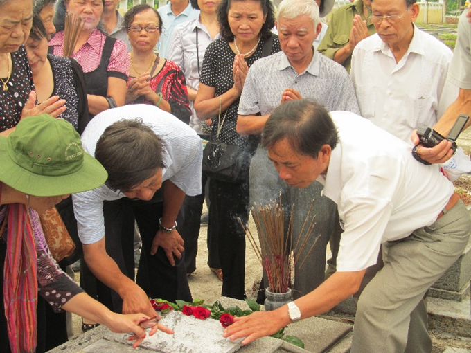 “Rồi đi qua thời hậu chiến gian nan/ Vẫn bên nhau những con người quả cảm/ Đã xông pha trong chiến tranh chống Mỹ” - Chị Gia Phong - vợ nghệ sỹ Điện ảnh Trần Hữu Thanh đã “xuất khẩu” hai câu thơ khi thấy nhà văn Cao Duy Thảo – tay trong tay, chân phải chống gậy dìu nhà thơ Thanh Thảo bước vào Nghĩa trang liệt sĩ Điện Bàn. Nơi đây, có nhà văn Nguyễn Hồng, biên đạo múa Phương Thảo và tác giả bài thơ nổi tiếng Bóng cây Kơ nia – Ngọc Anh. Nhà văn Nguyễn Bá Thâm bạn thời đại học và cùng chiến trường nghẹn ngào khấn vái “Hồng ơi! Hôm nay bọn tao về thăm mày đây, đông lắm! Thằng Hà, em mày cũng về đây! Bọn tao gửi cho mày những bông hồng vàng, bởi mày thời học lớp Ngữ văn Tổng hợp rất mê tác phẩm Bông hồng vàng của Paustovsky, cho mày 2 lon sữa ông Thọ để mày uống cho đã thèm…”. Nhà văn Vũ Thị Hồng, Nguyễn Bảo là bạn học ở đại học, bạn ở chiến trường gục đầu vào mộ anh mà khóc, nhắc lại lời tuyên bố nổi tiếng “Nếu chúng mò vào được đây thì trước hết chúng phải bước qua xác tôi”.