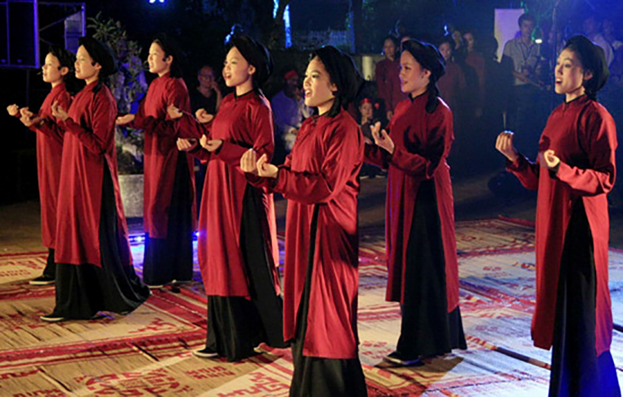| Điệu xoan đất Tổ, khởi nguồn từ phong tục thờ cúng Hùng Vương, tổ tiên của người Việt. |