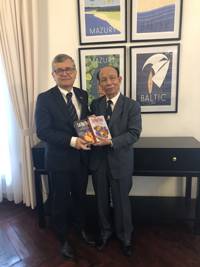 | Ngài Aleksander Surdej - Đai sứ Ba Lan tại Việt Nam nhận sách do dịch giả, nhà văn Lê Bá Thự tặng |