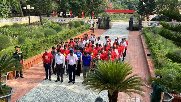 | Đoàn công tác thắp hương và tưởng niệm các liệt sĩ Bạch Long Vĩ tại Nghĩa trang liệt sĩ trên đảo |