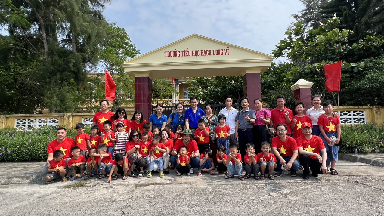 | Đoàn công tác tặng quà cho các học sinh trường tiểu học Bạch Long Vĩ |