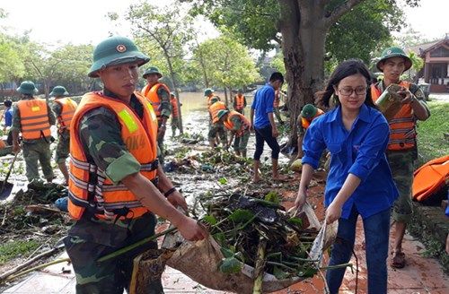 | Lực lượng quân đội giúp nhân dân khắc phục hậu quả thiên tai bão lũ tại Huế (Ảnh: Nguyễn Thanh Hải) |