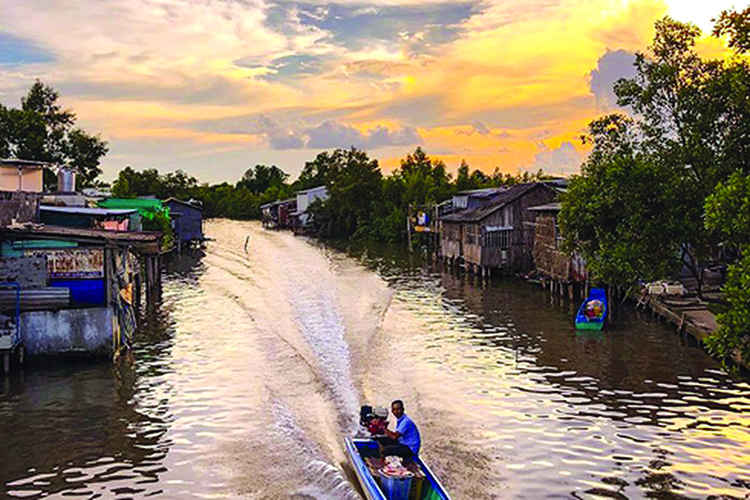 Khi tôi miên man nghĩ về phận người phận cá miệt sông nước thì chiếc tàu đã qua chỗ cạn, tiếp tục nổ máy hướng về Đất Mũi. Lúc này bắt đầu lác đác hiện ra vài căn nhà cất dọc bờ sông. Điều lạ lùng đối với tôi là ở đây nhà nào cũng quay cửa xuống sông, chớ không phải quay cửa lên bờ như những khu vực khác. Mấy người đi chung tàu nói cho tôi biết, dân xứ đó đâu có đi lại bằng đường bộ, toàn đi bằng xuồng ghe thôi, nên cửa quay xuống sông mới là cửa chính, nếu có làm thêm cửa phía trên bờ thì cũng là cửa phụ. Tôi nhìn kỹ lại, thấy đúng là phía bờ hầu như không có đường sá gì hết. Đôi chỗ người ta đắp tạm mấy cục đất để di chuyển từ nhà này qua nhà khác. Có chỗ người ta bắc cầu khỉ dài dọc theo bờ sông chớ không làm đường. Chính đặc điểm đó đã khiến cho một nghề khá thịnh hành ở khu vực này, đó là nghề chạy đò dọc. Những chủ đò cứ chạy dọc theo các con sông hoặc kinh rạch, ai cần đi đò thì gọi hoặc dùng nón lá ngoắc đò vô rước. Đối với những chuyến đò đêm, nhà nào muốn đi đò thì để cái đèn dầu dưới bến, chủ đò sẽ biết mà ghé vào đón.