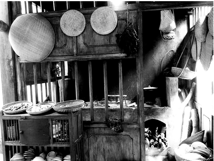 Nhà mình qua bao lần đổi thay mà bao giờ cũng vậy, ba đặt gian bếp bên phải nhà. Định hình xong ngôi nhà bếp be bé, thâm thấp ấy, ba chọn địa điểm đặt bếp. Ba không đặt bếp ở giữa gian mà lúc nào cũng lệch về một phía góc. Nơi đó, đất nền ba đầm chặt hơn và cao hơn nền đất của gian bếp, nhìn cái bếp cao ráo, khang trang, sạch thoáng. Sau khi định vị được phần bếp, thể nào ba cũng làm cho được cái giàn trứa. Giàn trứa gần như một cái sạp thô sơ được làm bằng đôi miếng tre lồng mắc, loại tre đặc ruột, cứng cáp. Hoặc có đôi khi đó là những đoạn cây săn cứng cáp má chặt trên rừng về, phơi phóng qua mấy nắng giòn.