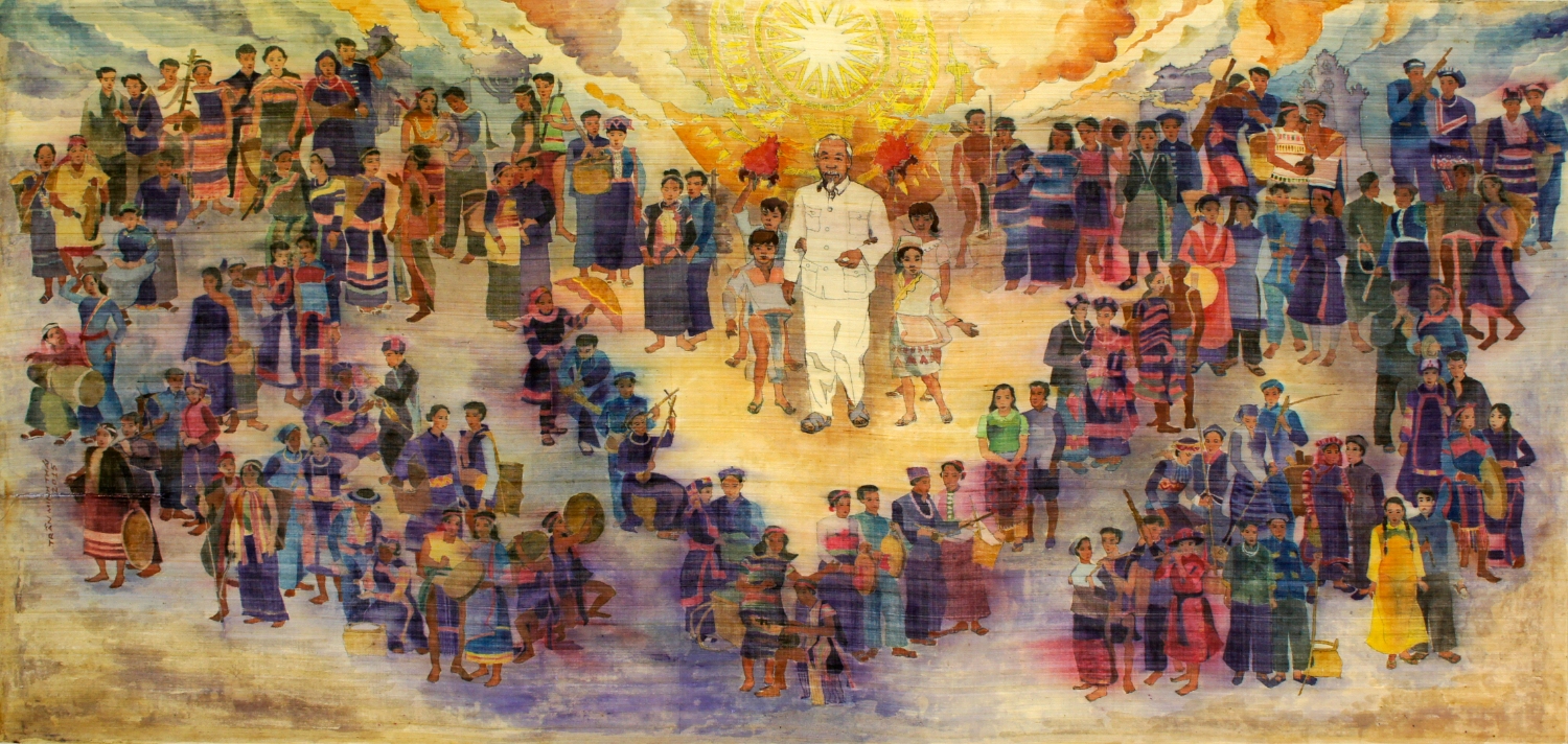 | Bác Hồ với đồng bào các dân tộc Việt Nam (tranh lụa của Trần Minh Thái) . Ảnh TL |