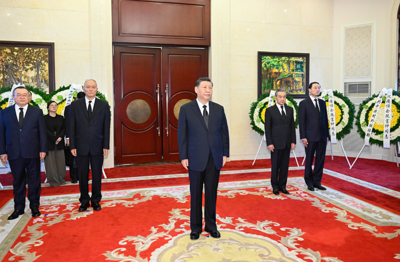 | Tổng Bí thư, Chủ tịch Trung Quốc Tập Cận Bình cùng đoàn lãnh đạo cấp cao Trung Quốc viếng Tổng Bí thư Nguyễn Phú Trọng. Ảnh: Tân Hoa xã |