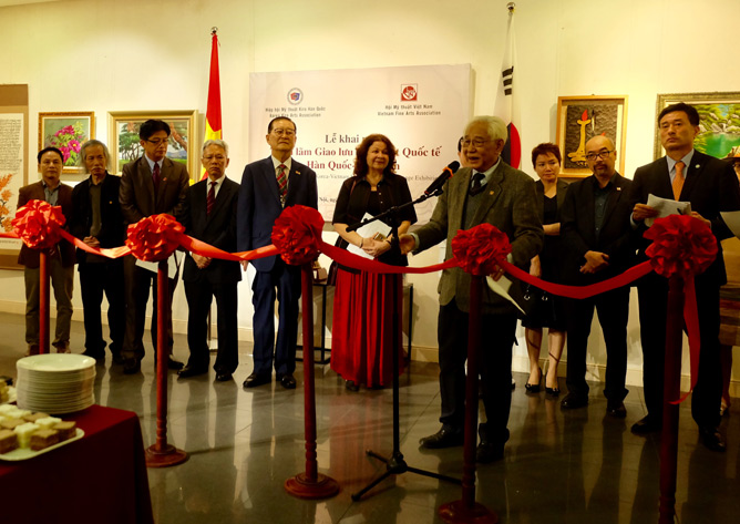 Triển lãm giao lưu mỹ thuật quốc tế Việt Nam - Hàn Quốc do Hội Mỹ thuật Việt Nam, Hiệp hội Mỹ thuật Kiro Hàn Quốc phối hợp tổ chức, đã khai mạc sáng 27/3, tại Nhà triển lãm 16 Ngô Quyền, Hà Nội.