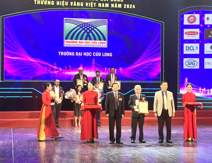 Theo đó, Trường Đại học Cửu Long nhận được 2 giải thưởng gồm: Top 20 Thương hiệu vàng dành cho tập thể Trường Đại học Cửu Long và giải thưởng Trí thức tiêu biểu Việt Nam dành cho cá nhân Nhà giáo Ưu tú, Phó Giáo sư, Tiến sĩ Lương Minh Cừ - Bí thư Đảng uỷ, Hiệu trưởng Nhà trường.