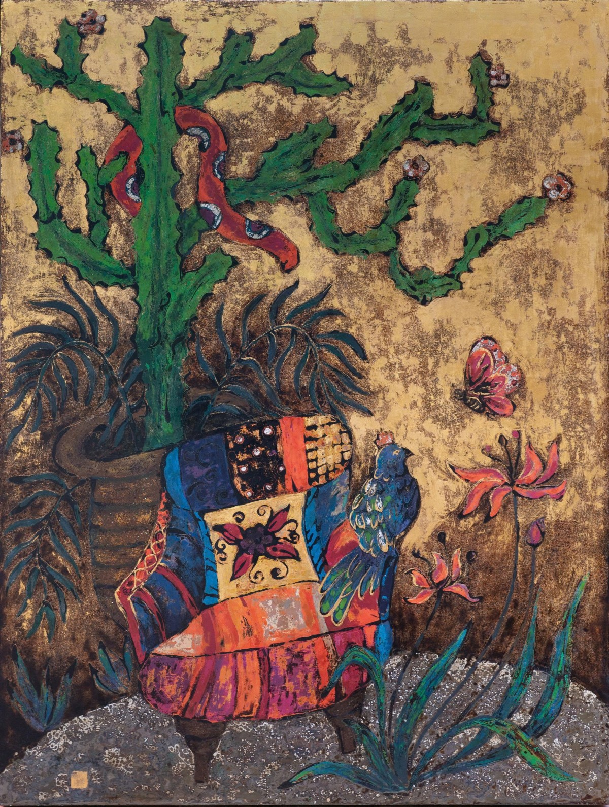 Qua lăng kính của họa sĩ Trần Ngọc Ánh, khu vườn nơi xưởng vẽ quen thuộc của cô trở thành những miền đất cổ tích, thấp thoáng hình ảnh một Hà Nội mộng mơ trong đôi mắt trẻ thơ.