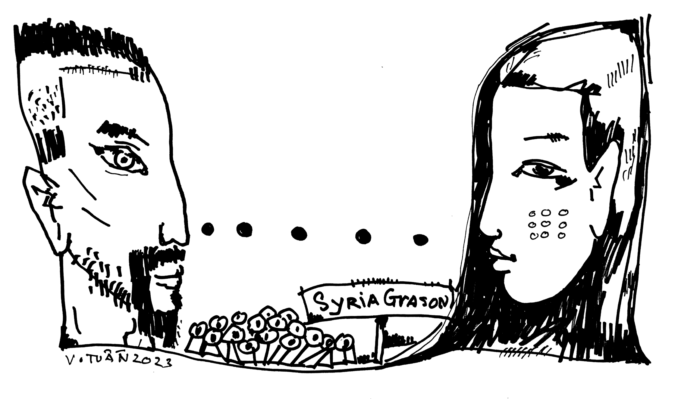 Grason rất “ngoan”, anh không chát chiếc gì với My về tiền cả. Cũng không kể về gia đình. Chỉ qua thông tin về “tiền tiền” ban đầu, nàng biết anh có một người mẹ ở Boston. Rồi thôi. Sau đó chỉ kể chuyện chiến đấu và những gì buồn vui ở Syria. Thỉnh thoảng, Grason hỏi My về công việc, sở thích của nàng. Thế thôi. Chuyện lính Mỹ ăn cái gì ở Syria là điều My quan tâm nhất. Lần đầu My hỏi, Grason đùa: “Ăn đạn!”. My post cái mặt nghiêm, Grason sorry rồi bảo: “Chúng tôi ăn cái gì không quan trọng. Thực phẩm đóng hộp suốt ngày thôi, kèm thêm hai gia vị không thể thiếu ở chiến trường là cát và khói súng, thỉnh thoảng còn có mùi máu rất tanh. Điều quan trọng là chúng tôi mong mau hết niên hạn chiến đấu để trở về”. Grason làm nhiệm vụ gì ở chiến trường Syria? Y tá. Một y tá quân đội chững chạc luôn trên tinh thần vào sinh ra tử. Thuốc giảm đau đặc hiệu morphin là thứ thuốc Grason luôn mang theo bên mình để tiêm vào bất cứ chỗ nào trên cơ thể người lính bị đạn bom công phá. Chỗ nào có thương binh mới, là chỗ đó có morphin. “Tiêm morphin vào rồi hẵng chết” là câu cửa miệng mà cánh lính trẻ thường bảo nhau. Những vết thương hở như đồi thịt băm nơi chiến trường, chỉ họa là thánh thì người thương binh mới không nghĩ tới morphin. Mãi thế, nên đồng đội gọi Grason là “y tá morphin”. Tất nhiên, sau đó còn phần băng bó, rồi mới chuyển thương. Và còn gì tiếp theo đó nữa là câu chuyện của những người chuyển thương trên trực thăng. Tóm lại, công việc y tá của Grason giữa đạn bom mịt mù khá đơn giản. Nhưng không có anh là không được.